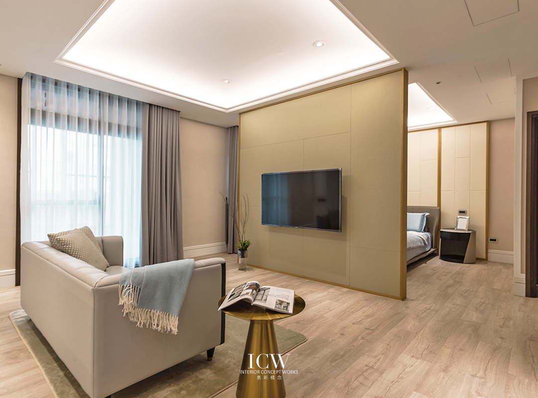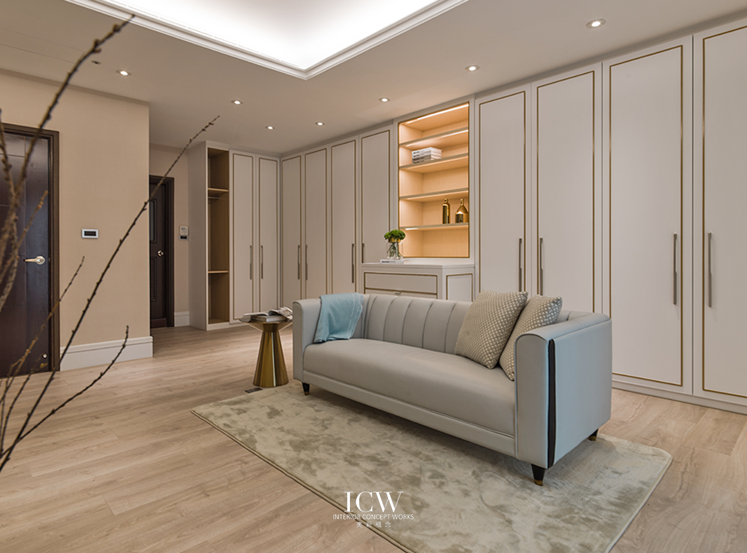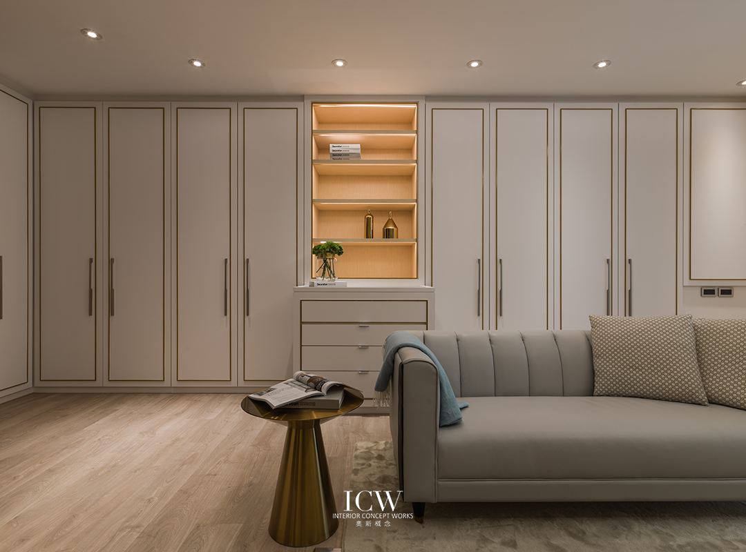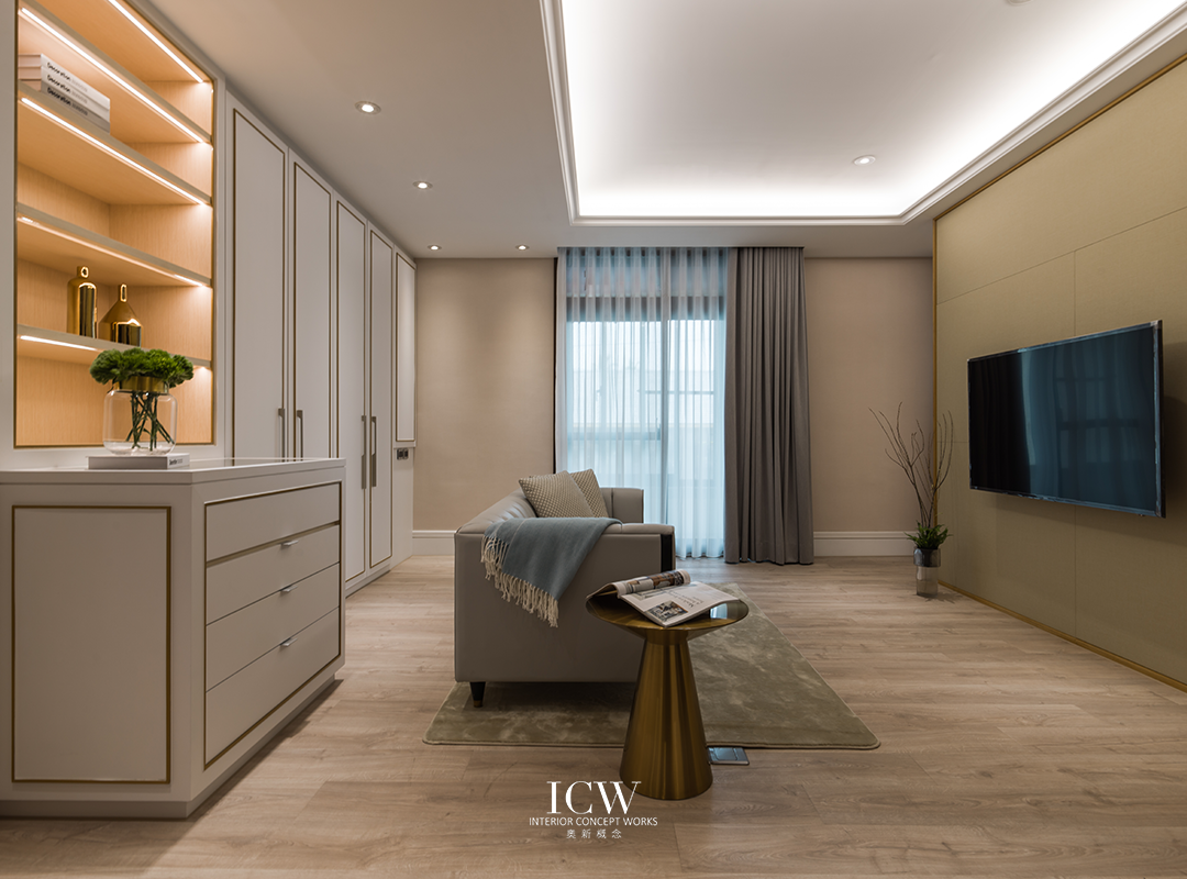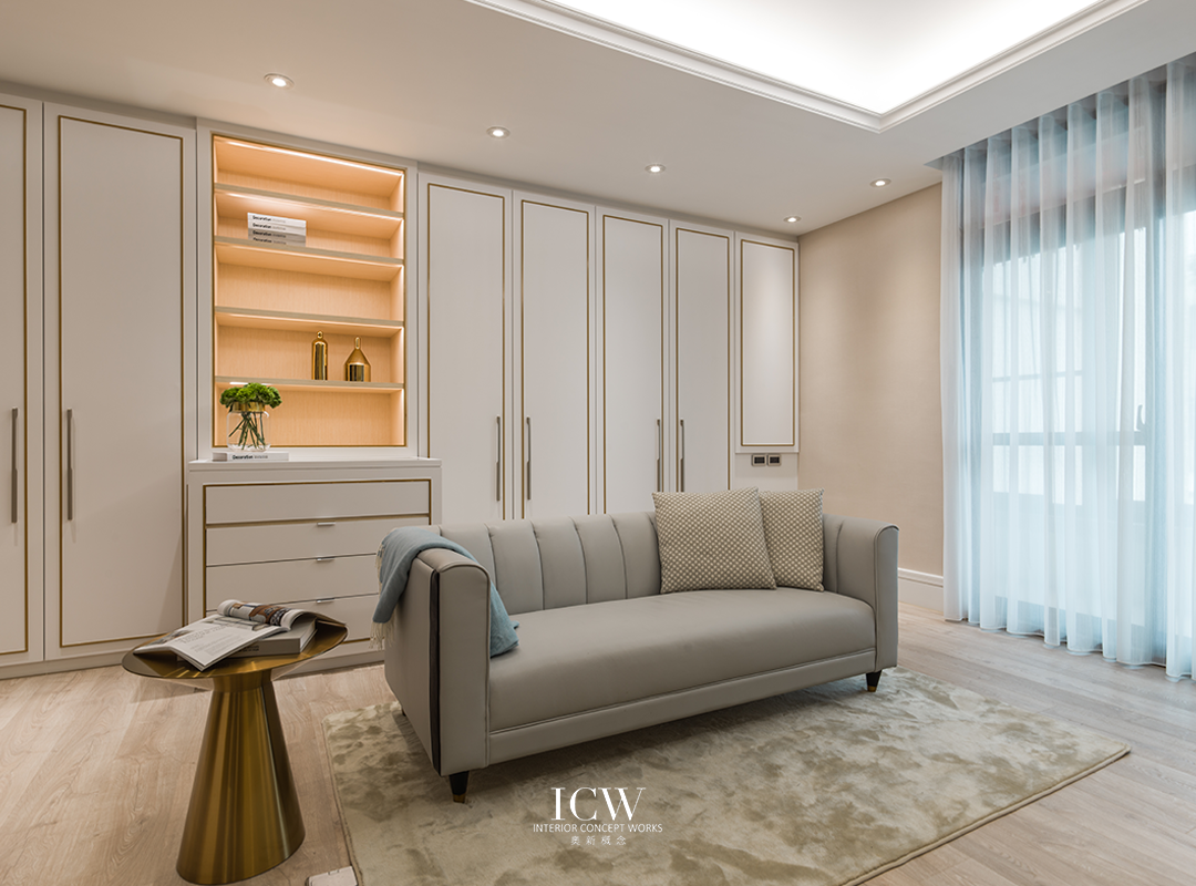 推開大門,豁然開朗的公共空間即刻展現眼前,客廳、餐廳與廚房巧妙融合,界線消弭於無形。精心設計的動線,讓烹飪、用餐、休憩等活動自然流暢,家人朋友歡聚於此,共享溫馨時光。 不遠處,一扇隱藏門通往一間精心設計的書房,提供了一個私密的閱讀與工作空間。書房與客廳無縫銜接,卻又巧妙地保持獨立,讓人在享受寧靜的同時,也能隨時融入家庭的溫馨氛圍。 與客廳相鄰的是寬敞的餐飲區,一座精美的展示架不僅是視覺焦點,更是通往開放式廚房的過渡。廚房設計獨具匠心,可靈活變身為餐飲區的延伸或獨立的烹飪空間,滿足不同的需求。 主臥套房是奢華與舒適的完美結合。臥室與起居區巧妙分隔,營造出私密而舒適的休憩空間。寬敞的衣帽間則提供了充足的收納空間,讓生活井然有序。