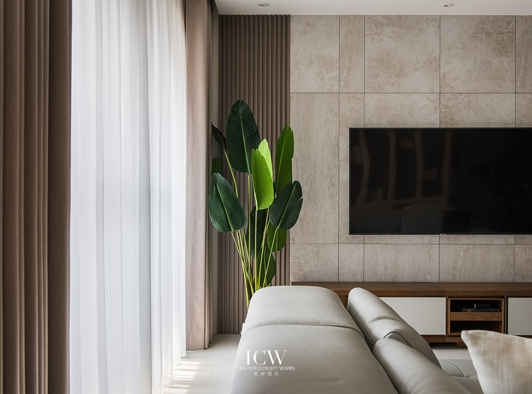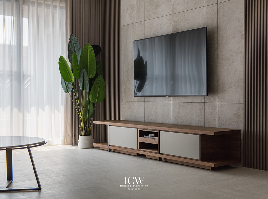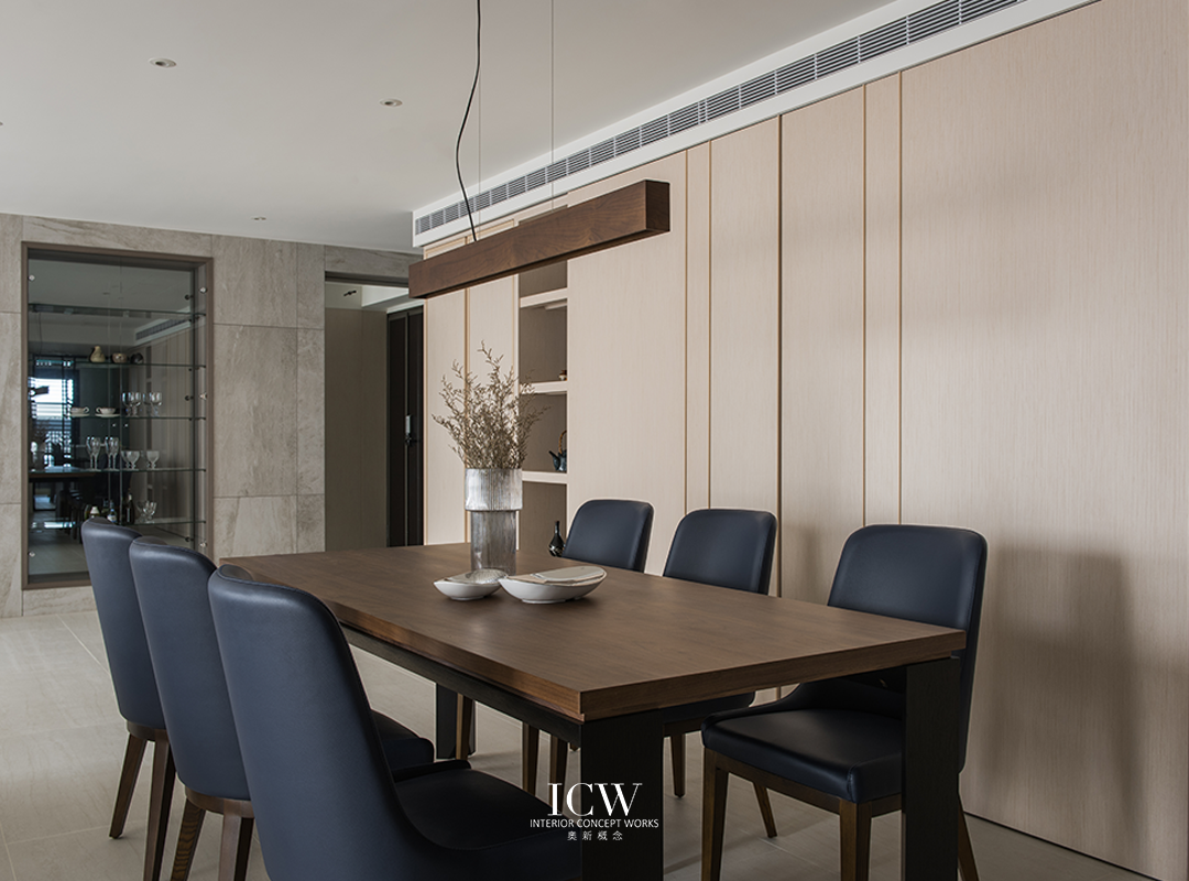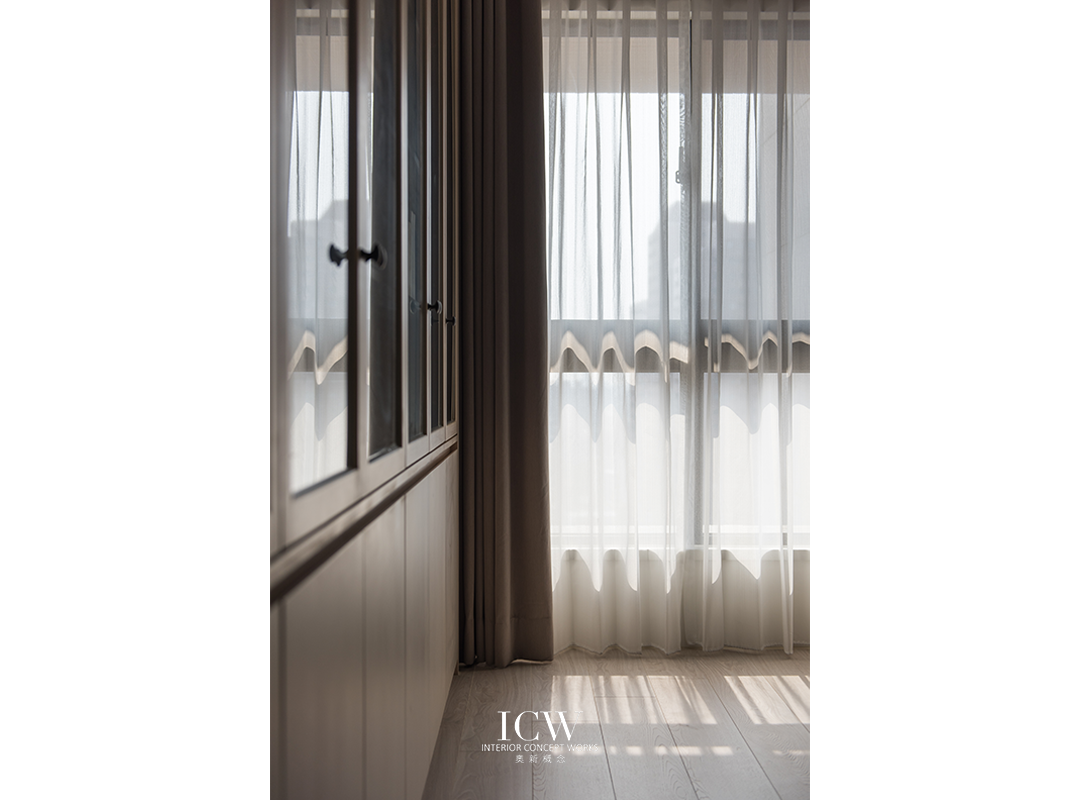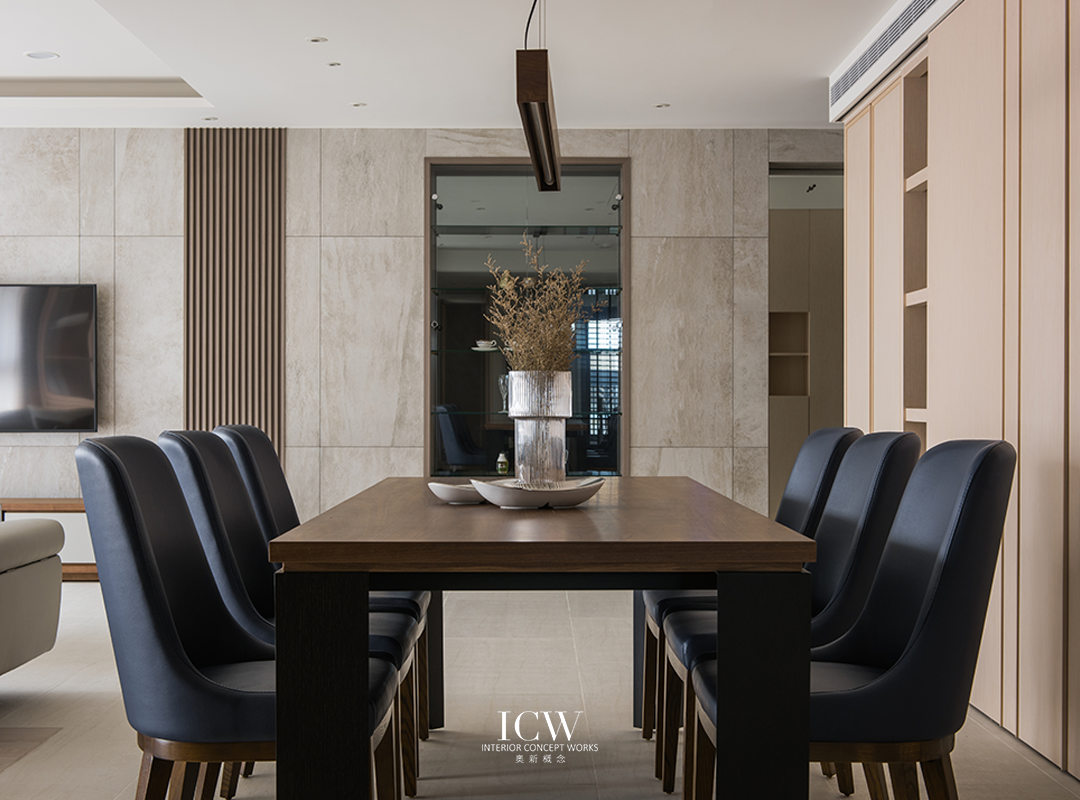 從公共區域的大型米色瓷磚連接到臥室的溫暖木地板,為不同的功能區域創造了獨特的觸感和視覺效果。 餐飲區後方巧妙設計的木質展示櫃帶有隱藏門,展現了額外的儲存空間和通往浴室的隱蔽通道,優化空間而不犧牲風格。 一個大型的開放式木質書架為起居室作為重要連結,成為展示書籍和珍品的展示櫃,為空間注入濃厚的人文氛圍和個性化色彩。讓整個空間、添增了溫馨的居家氛圍。