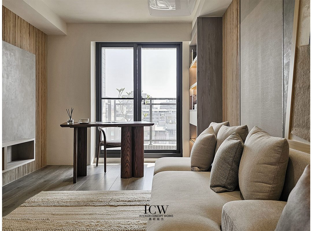 公私區域 | 完美結合日式侘寂風客廳的多功能設計