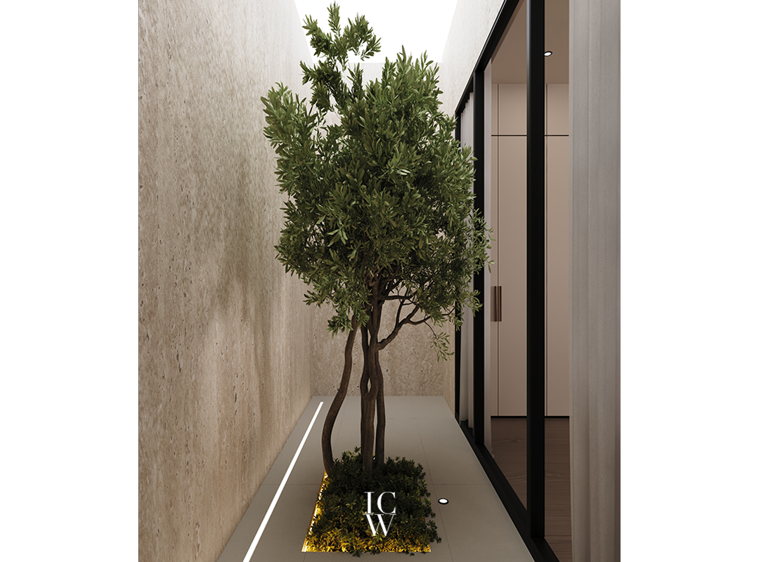 步入家中,第一眼是灑落陽光的陽台造景,猶如一幅自然與建築交織的詩意畫作。繁茂的綠意在室內若隱若現,自然光穿透大片落地窗,為空間注入清新而活潑的生命力。即使在夜晚,精緻配置的景觀燈光設計也能映照出樹影婆娑,光影交錯間,賦予居住者身處異國飯店般的浪漫氛圍。