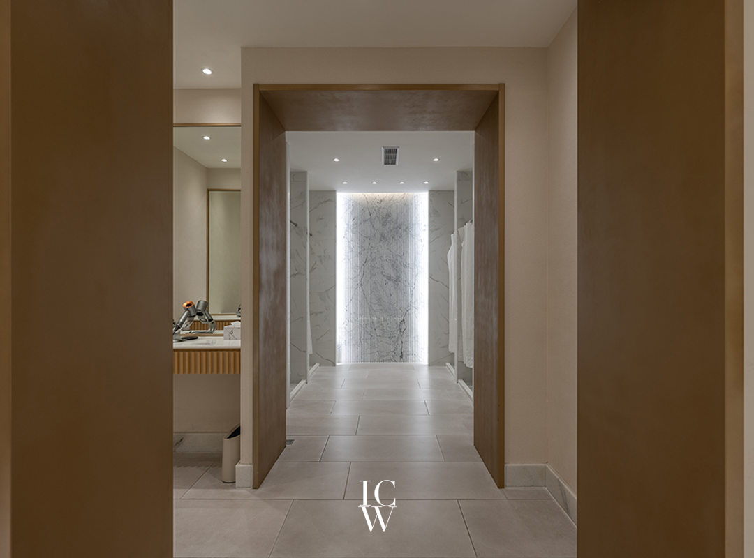 在空間後方的更衣室和浴室設備用奧新概念最擅長的飯店SPA的室內設計手法,為客人提供了一個高雅精緻且舒適的環境。