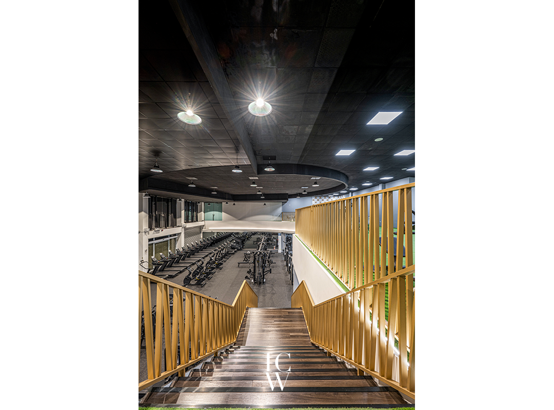 這裡創造了一個獨特的高度視野新感受,並提供了一個環境,去捕捉垂直及水平動線創造出來的運動精神感受。 提供了多樣性,周圍是一個裝飾有人造草皮的開放區域。這種創新的設計選擇將室外的一片風情帶入室內,提供了一個獨特的俯瞰健身區的視角,並捕捉了一個致力於追求健康與福祉的社區的精神。